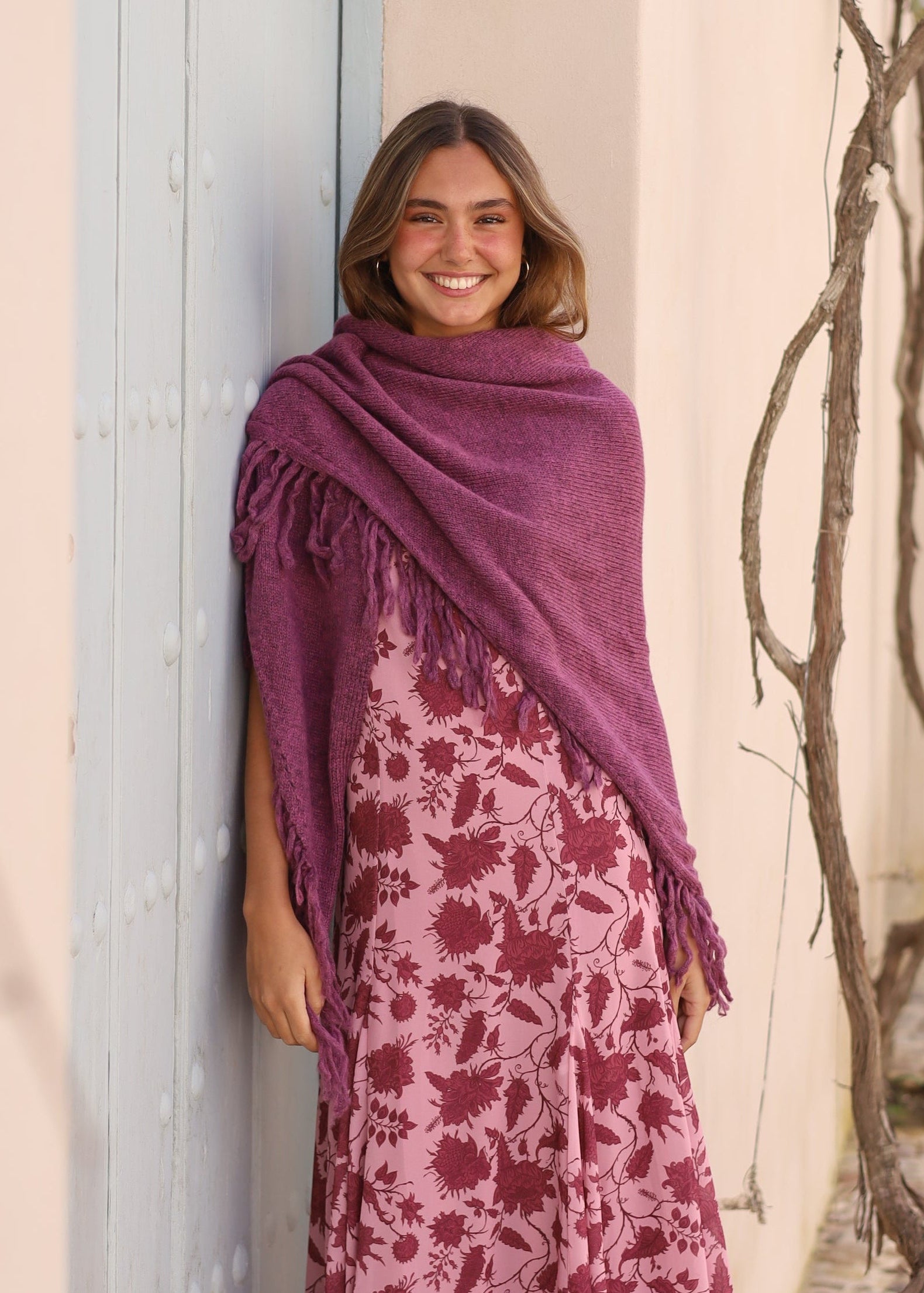 PONCHO FLECOS FRAMBUESA