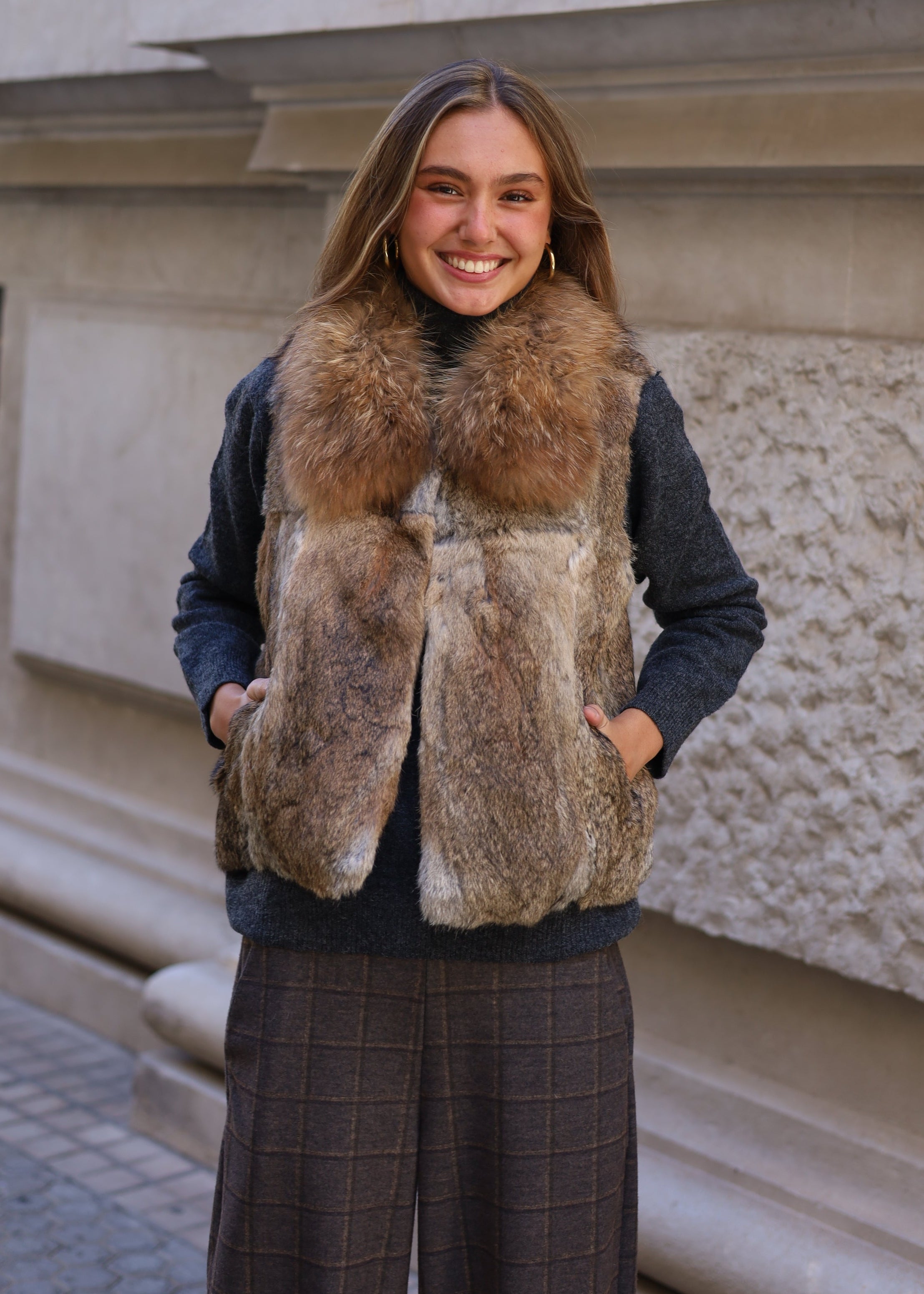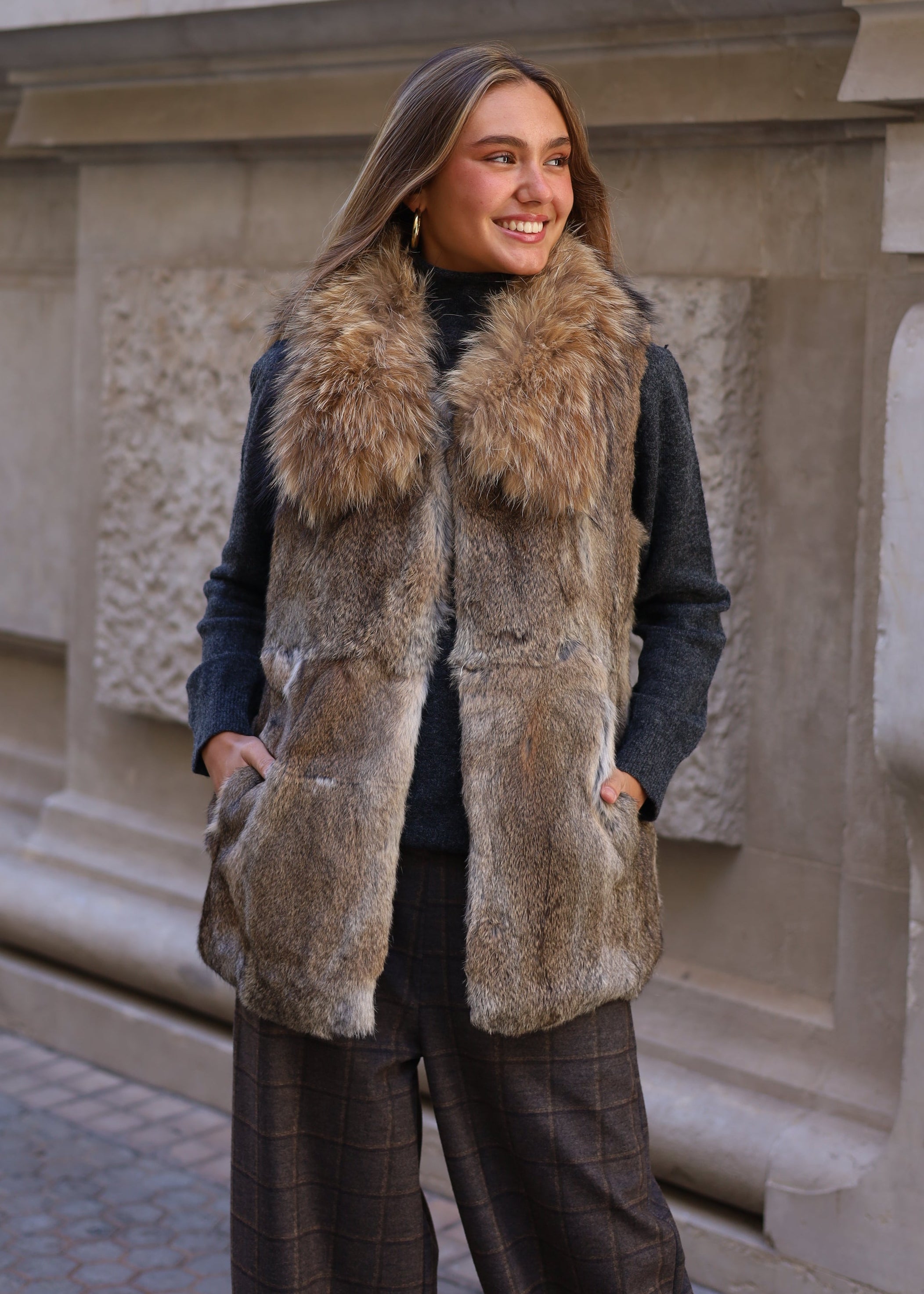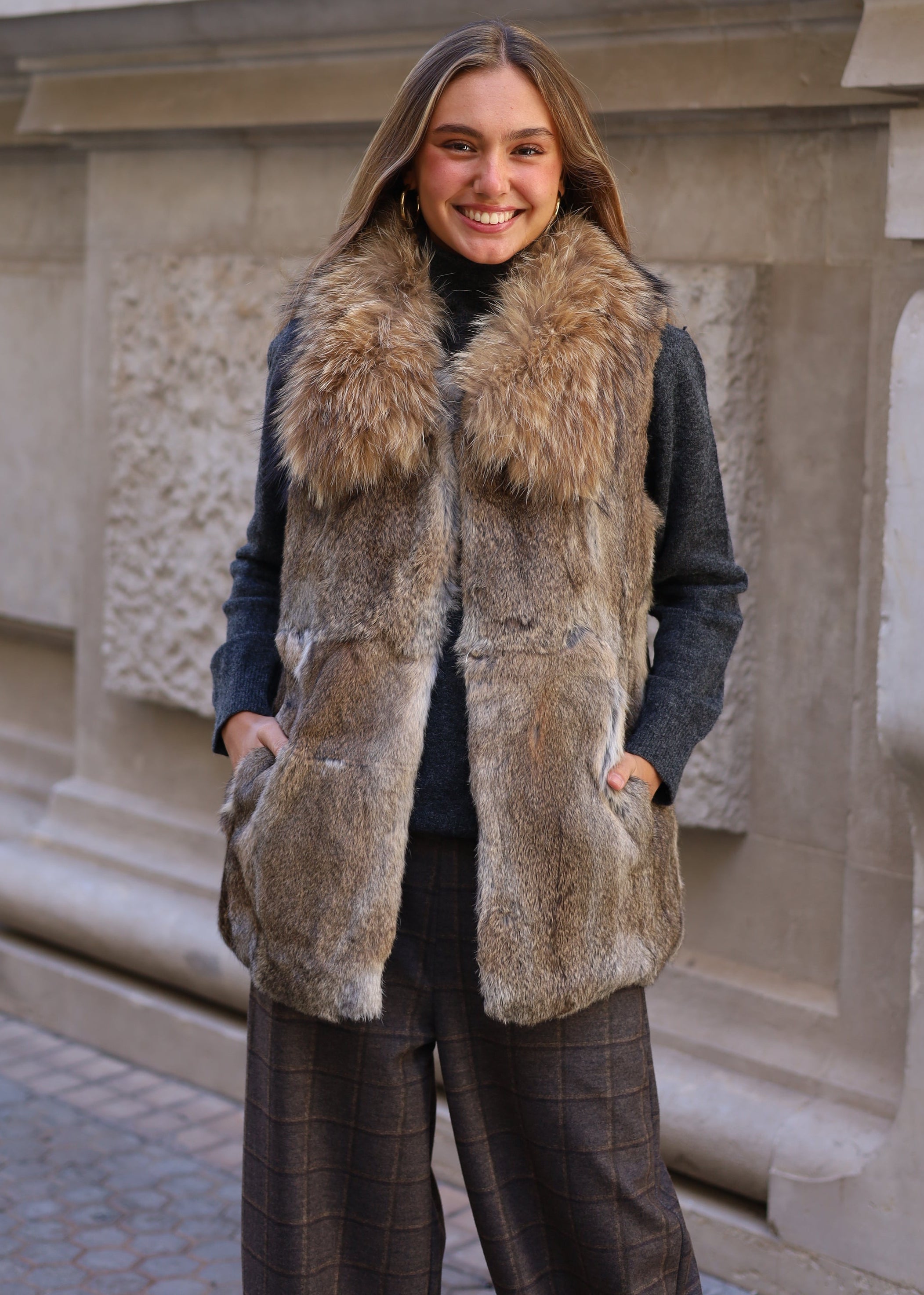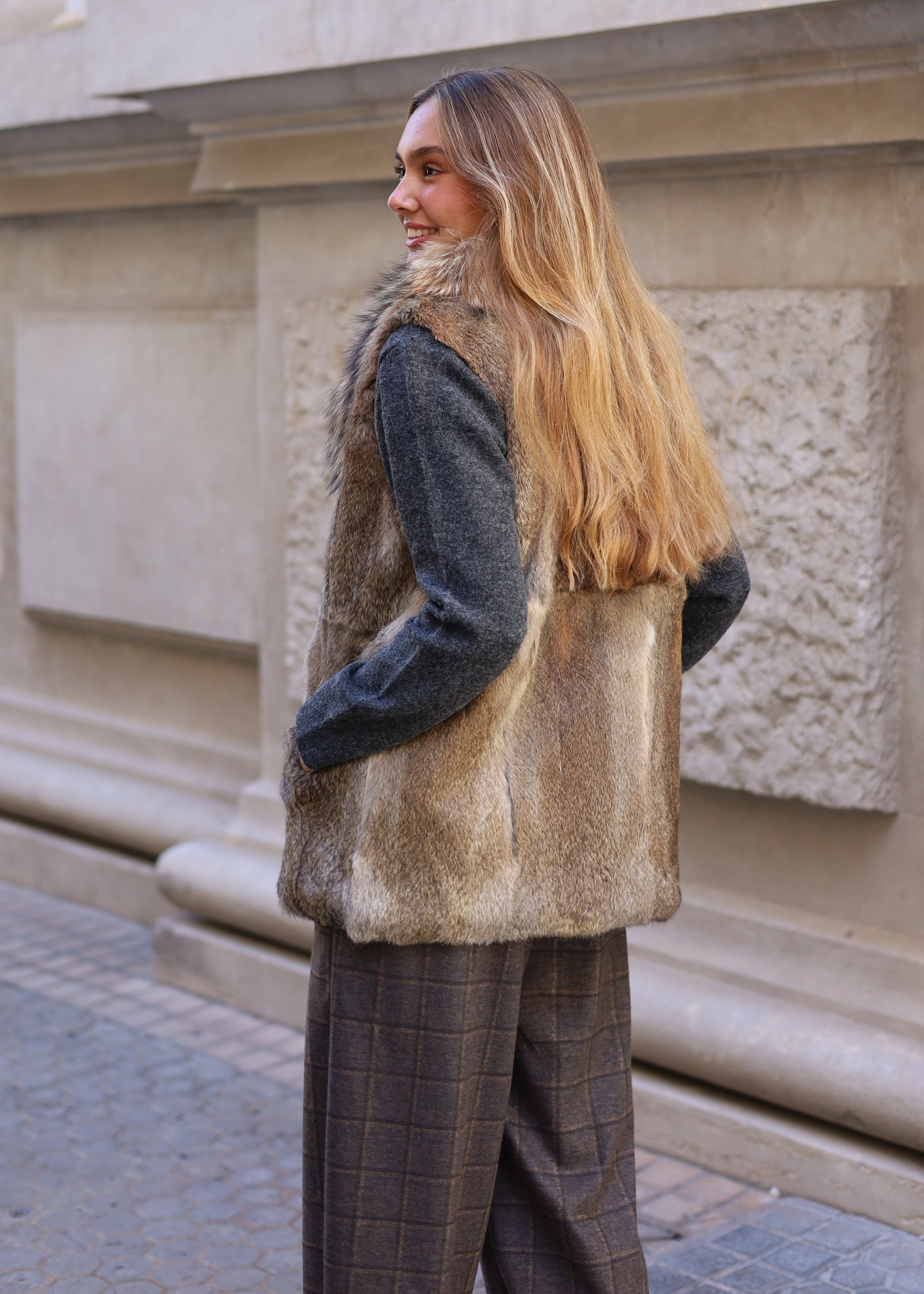 CHALECO PELO NATURAL LARGO