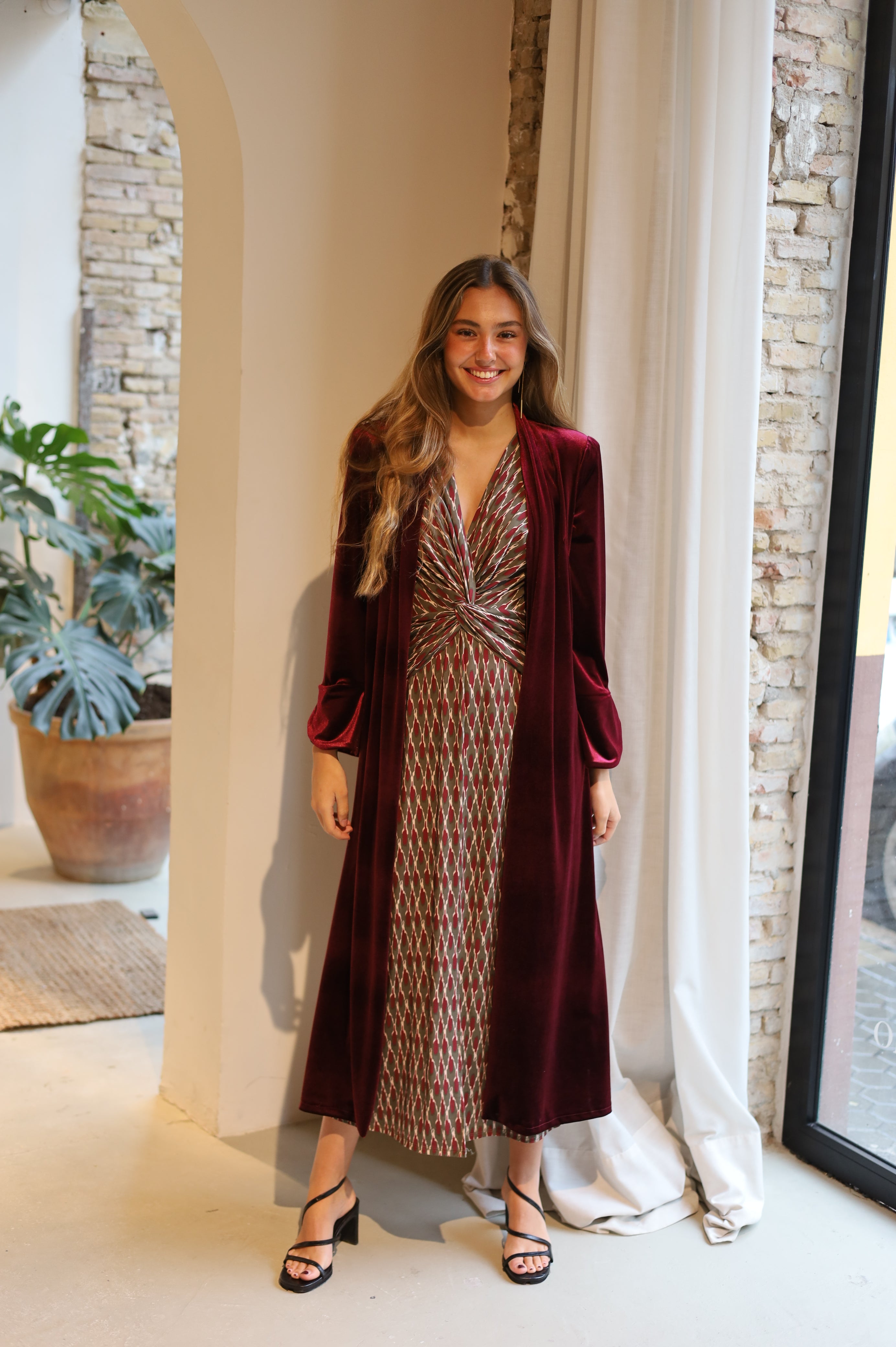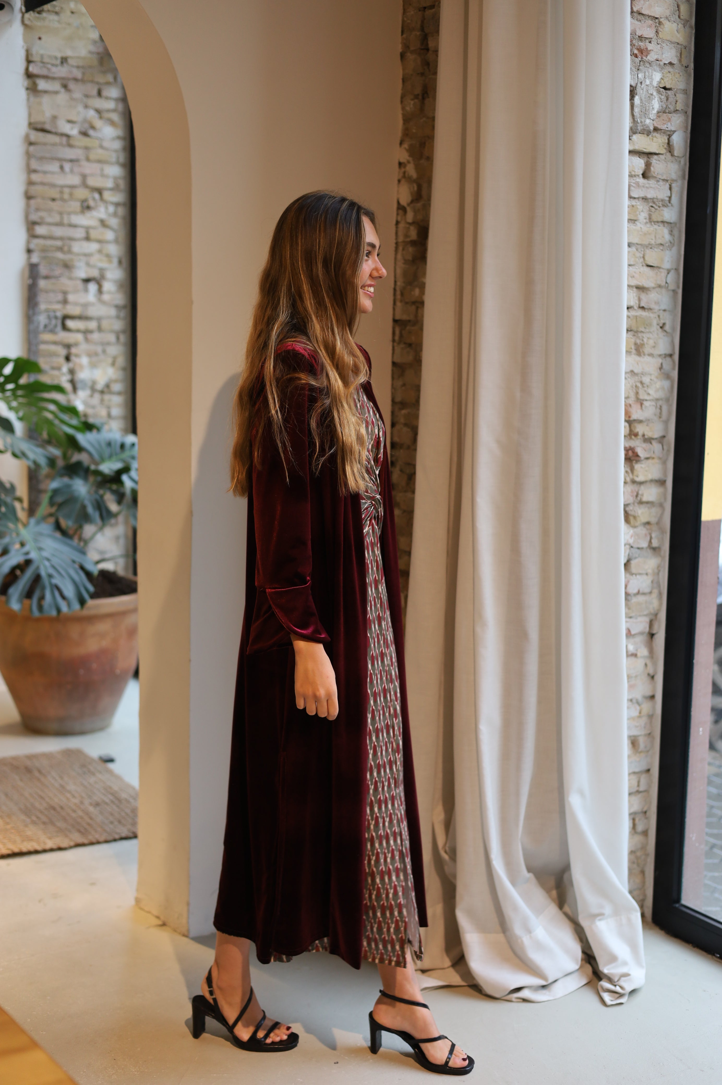 ABRIGO TERCIOPELO VOLANTES BURDEOS
