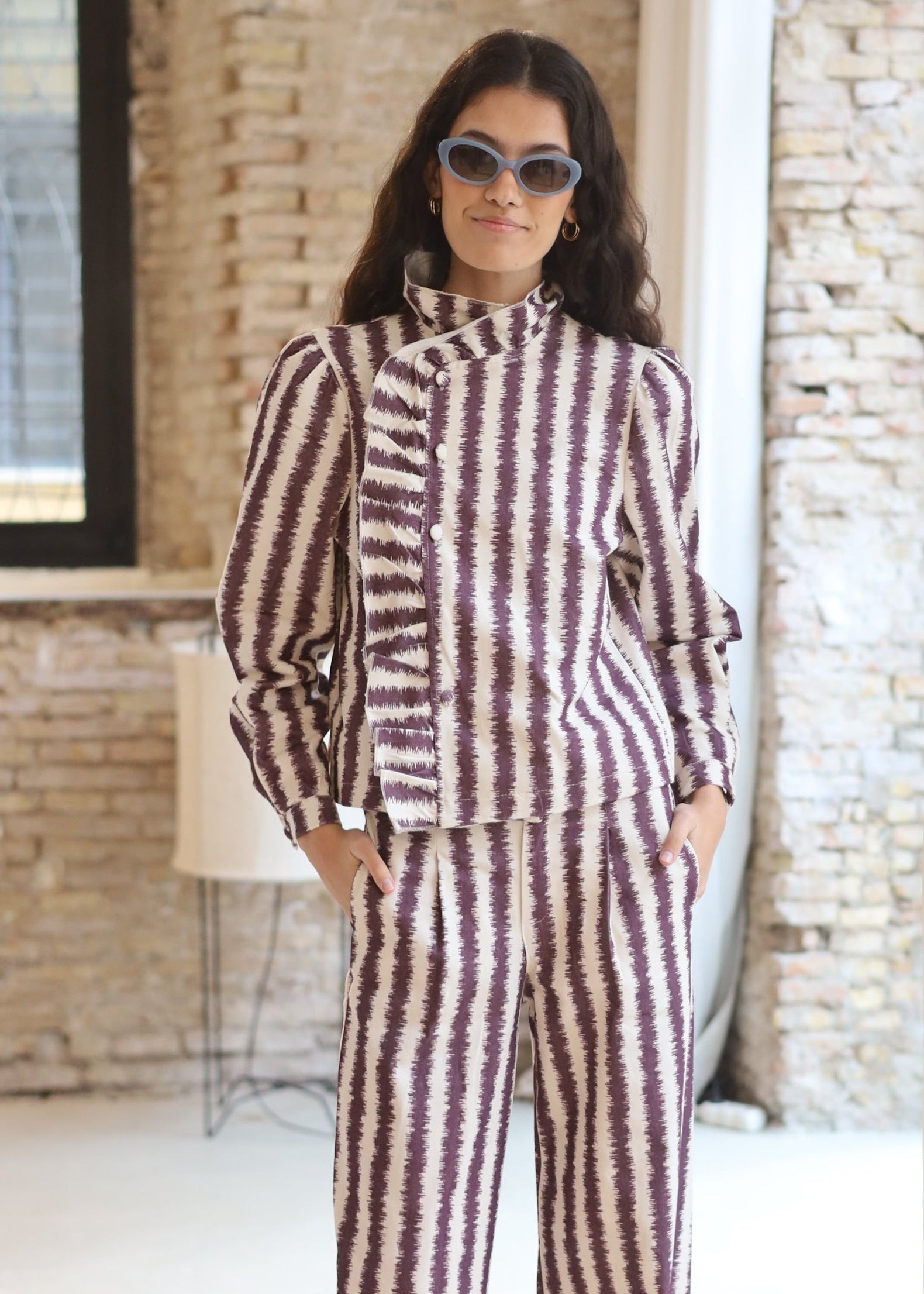 BLUSA VOLANTE IKAT MORADA