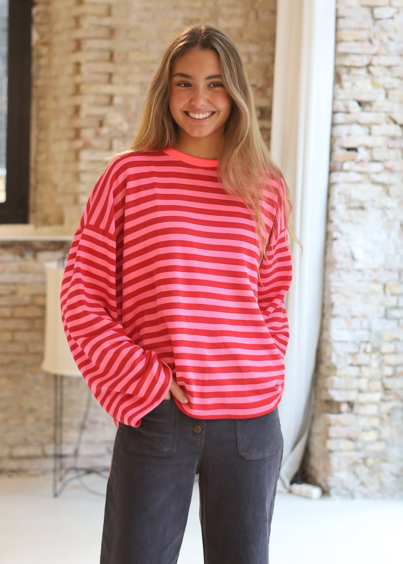 SUDADERA RAYAS FUCSIA