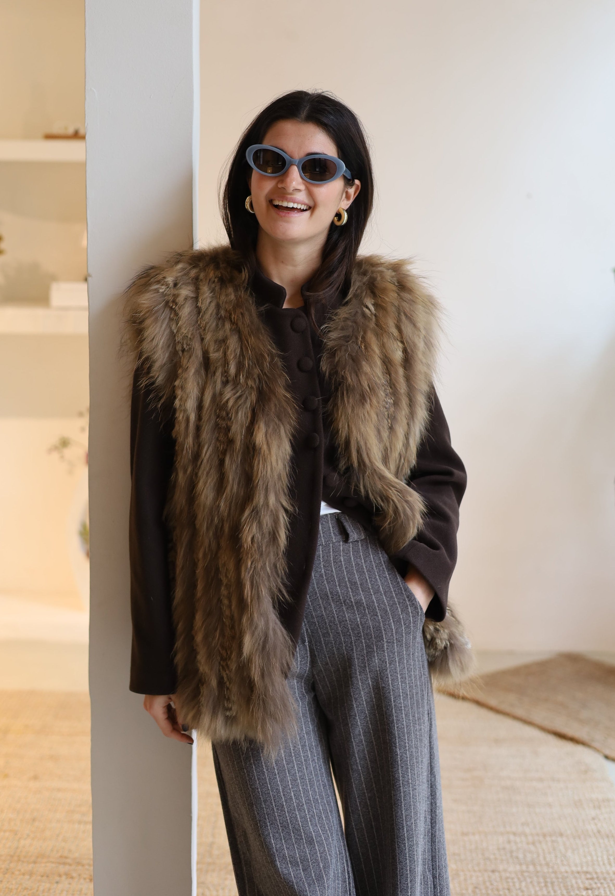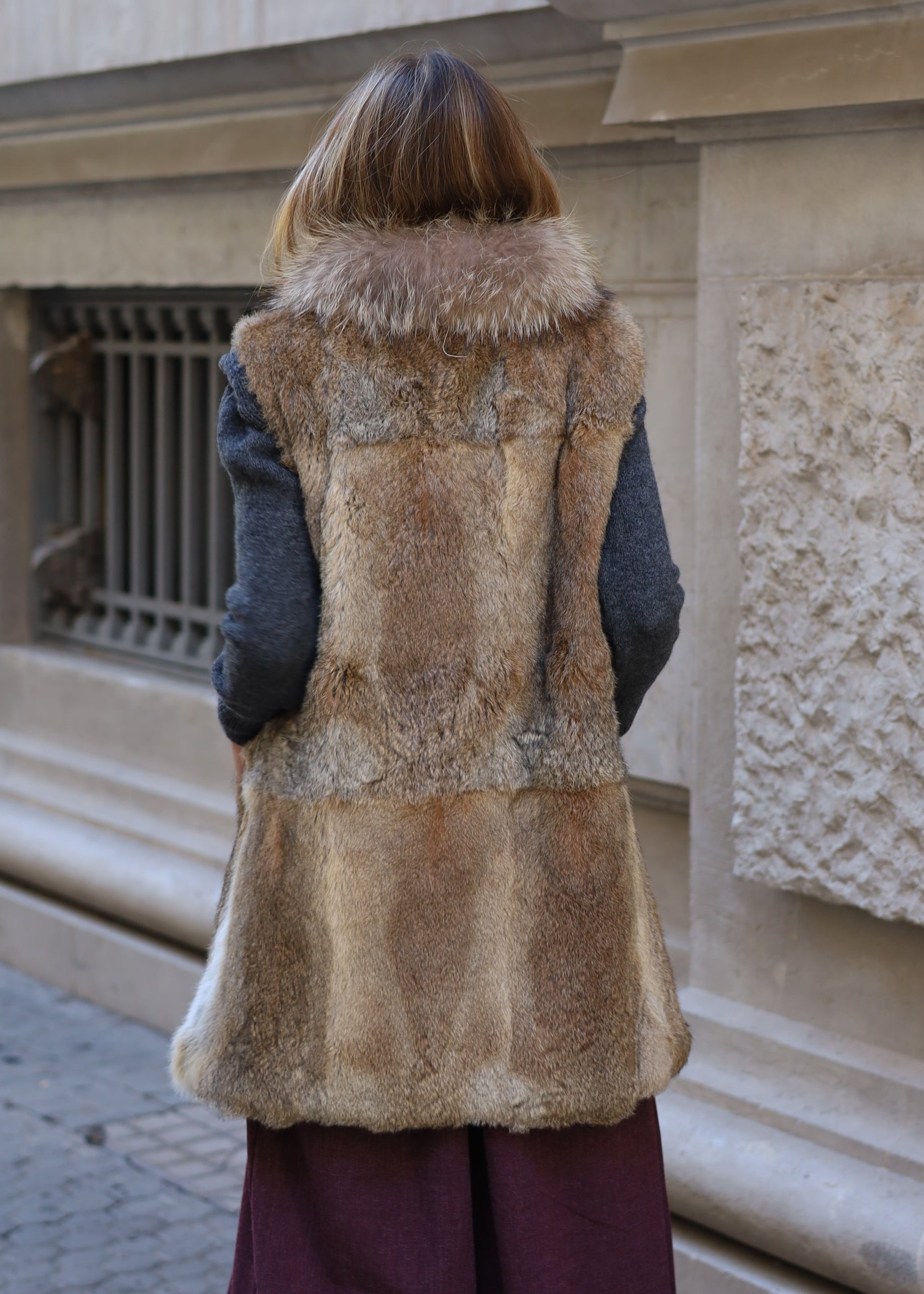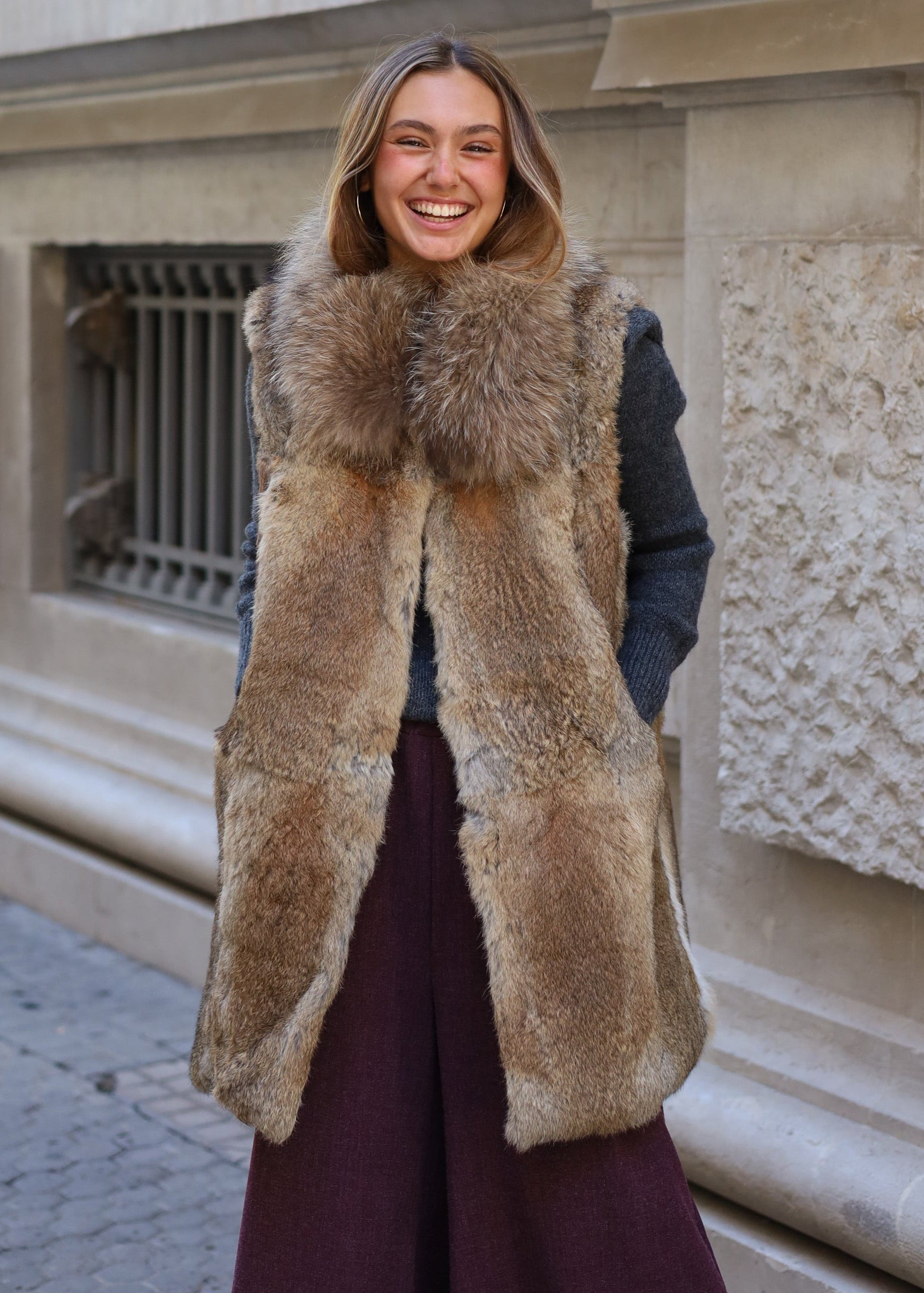 CHALECO PELO NATURAL LARGO 83 CM