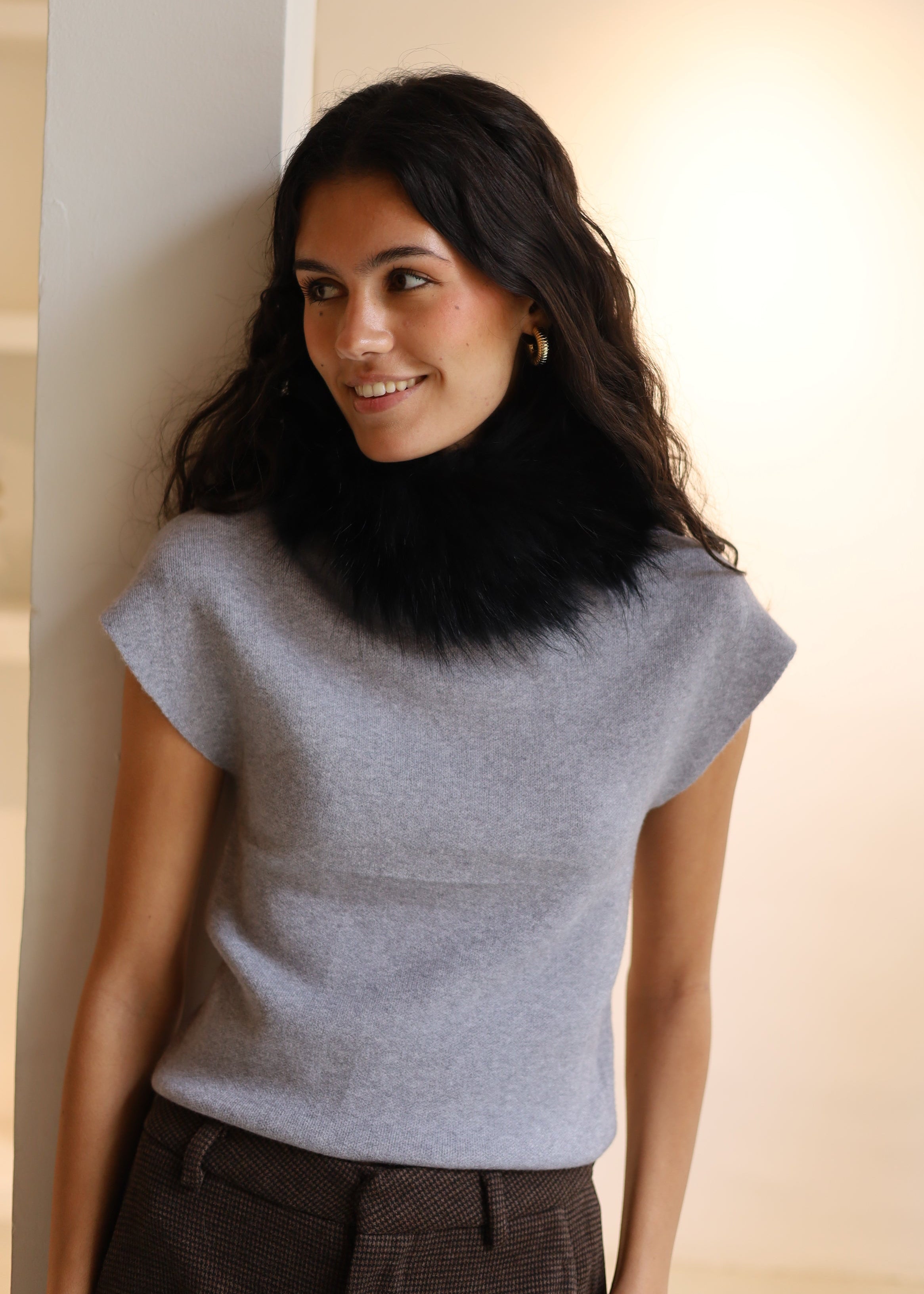 CUELLO PELO CORTO SINTETICO GRIS