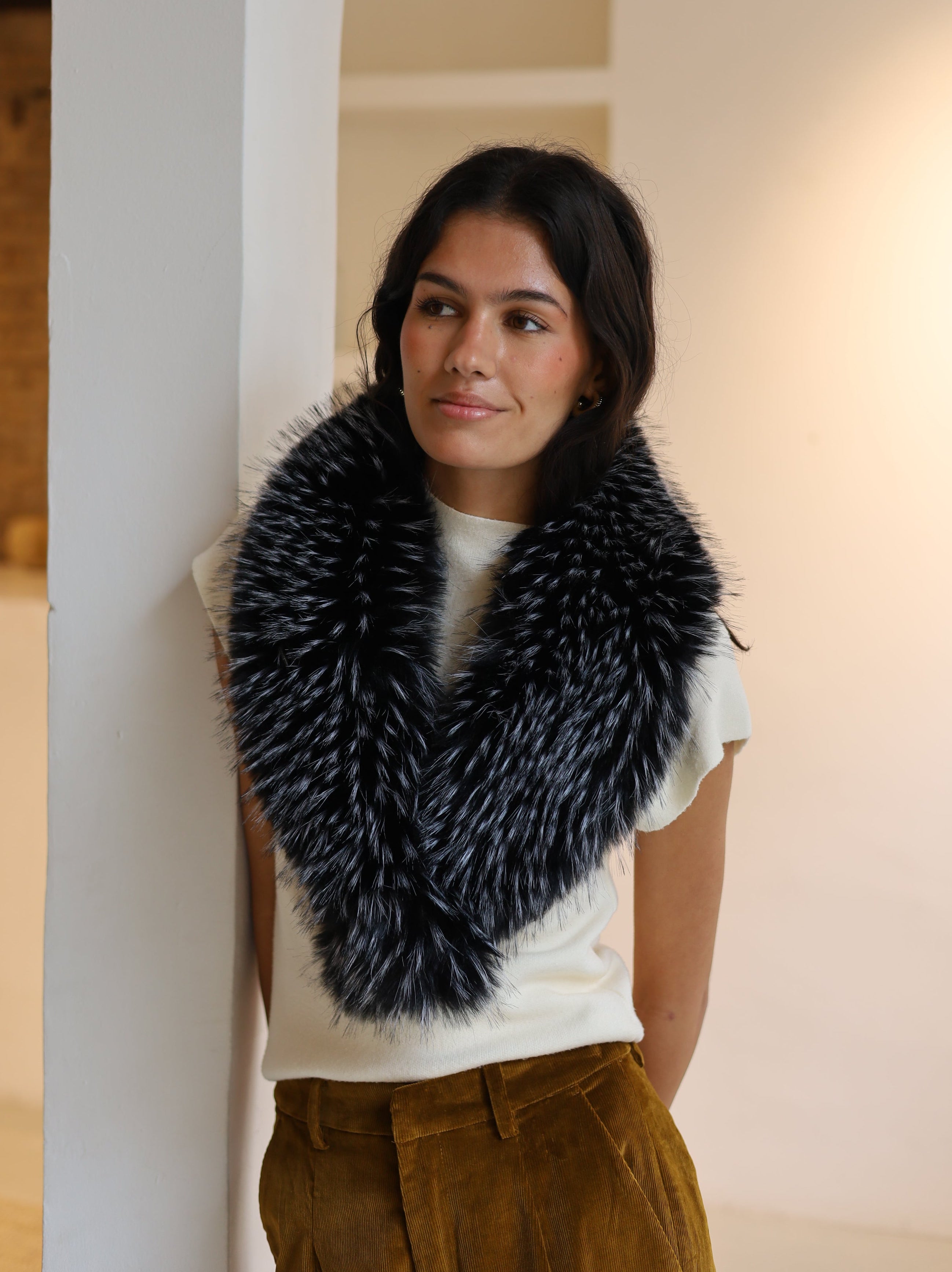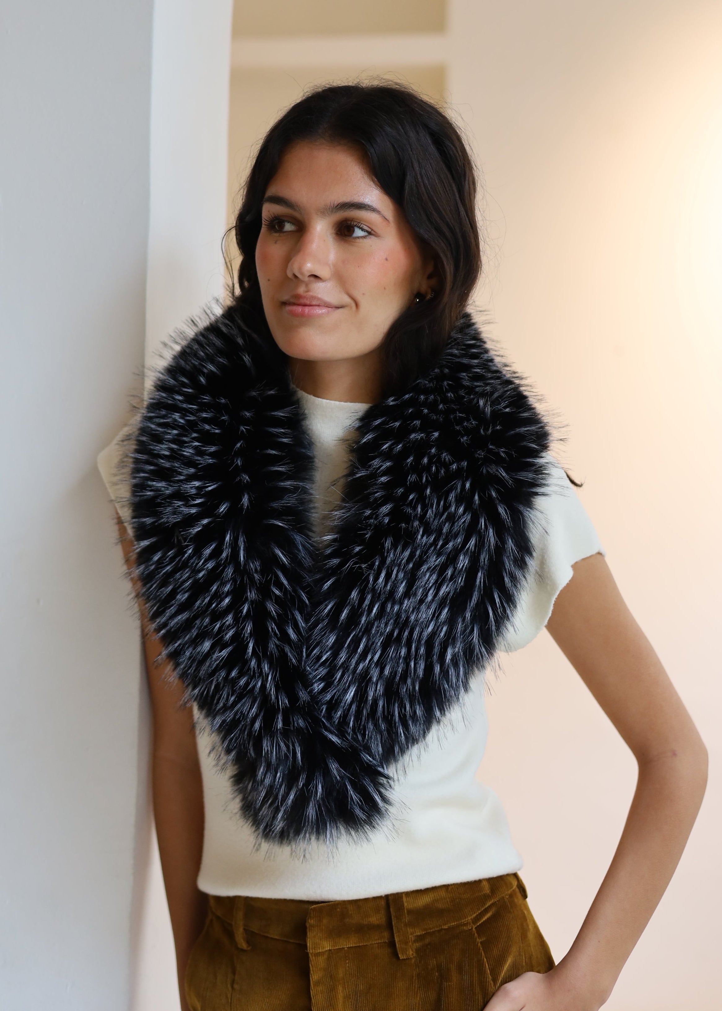 CUELLO PELO LARGO SINTETICO NEGRO Y BLANCO