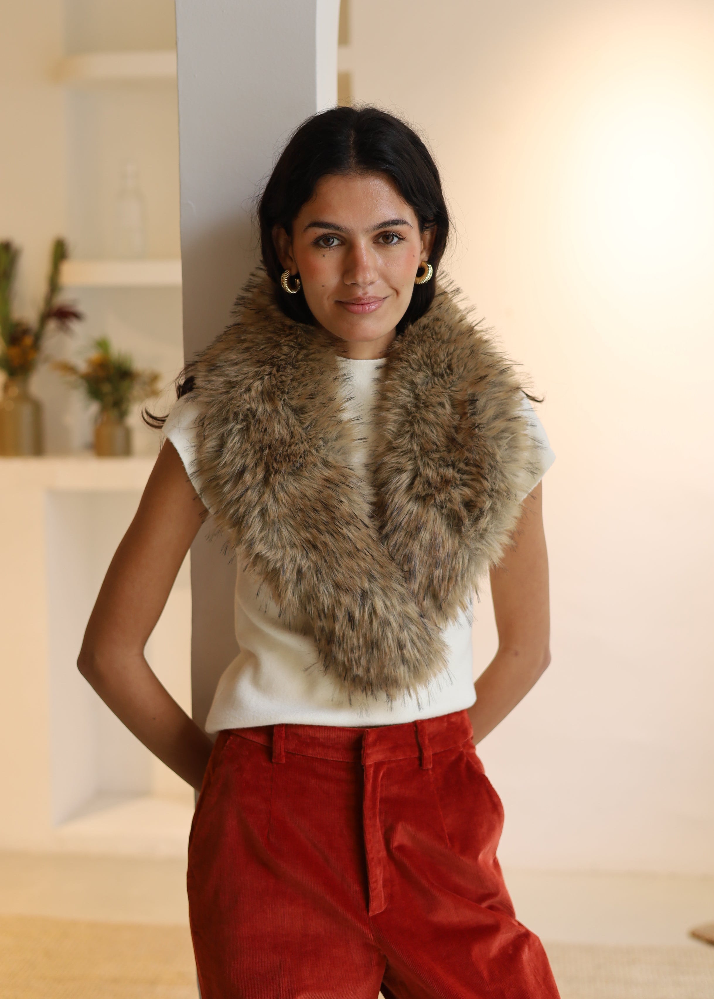 CUELLO PELO LARGO SINTETICO MARRON