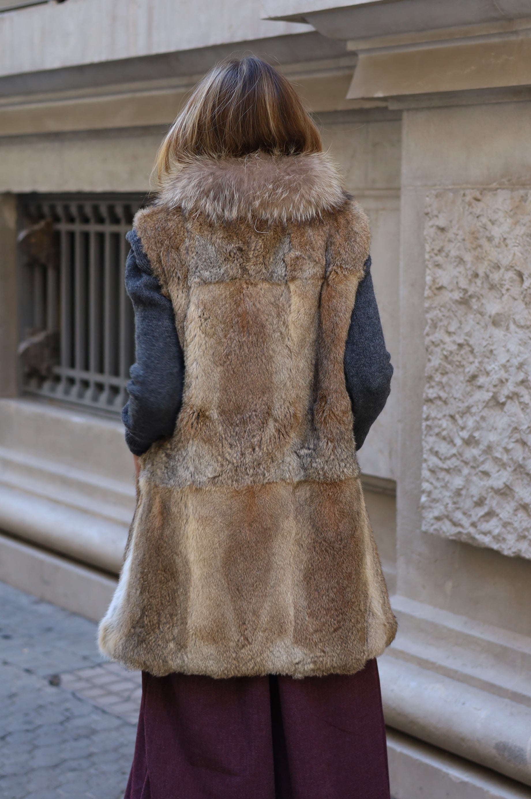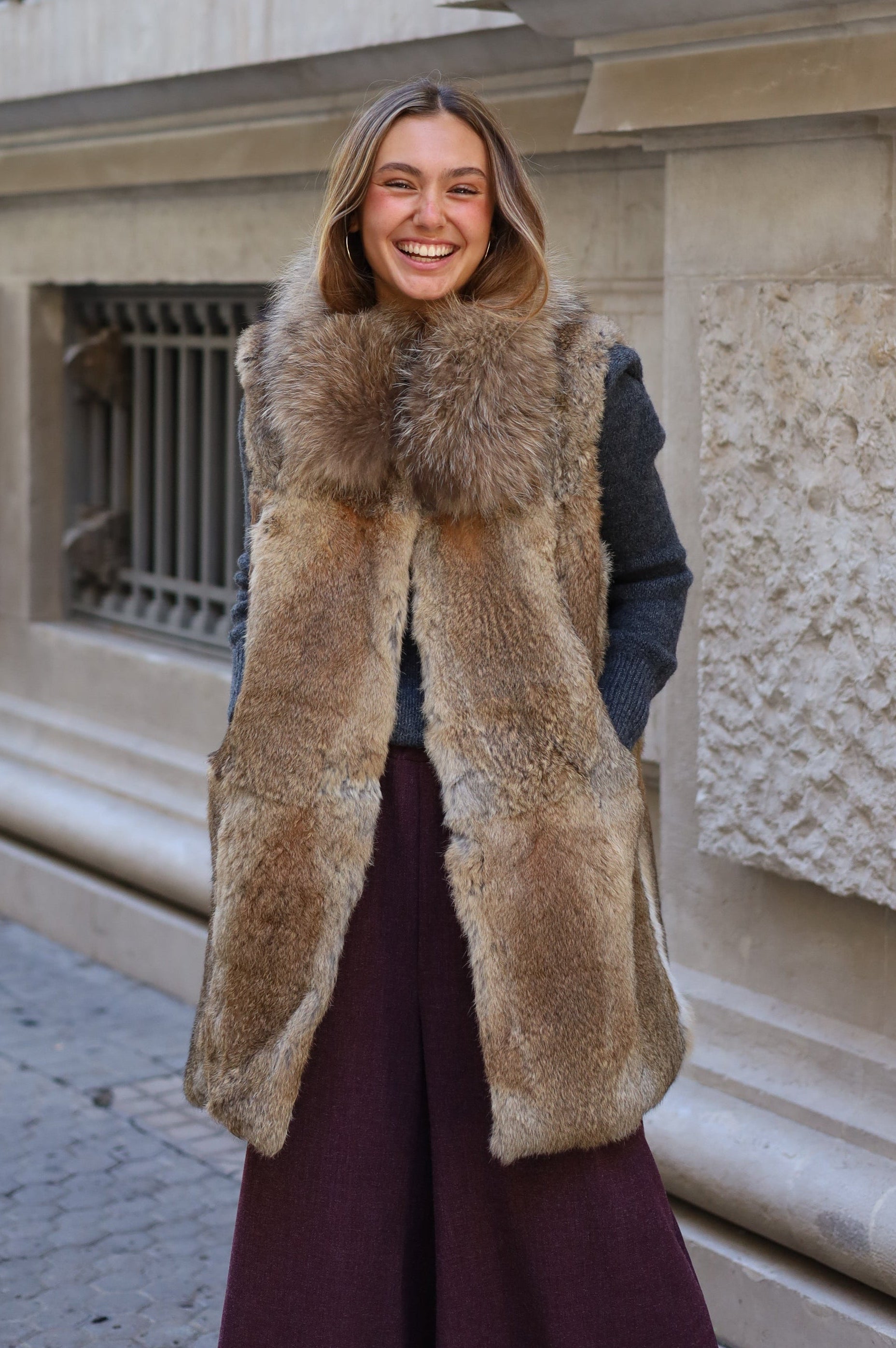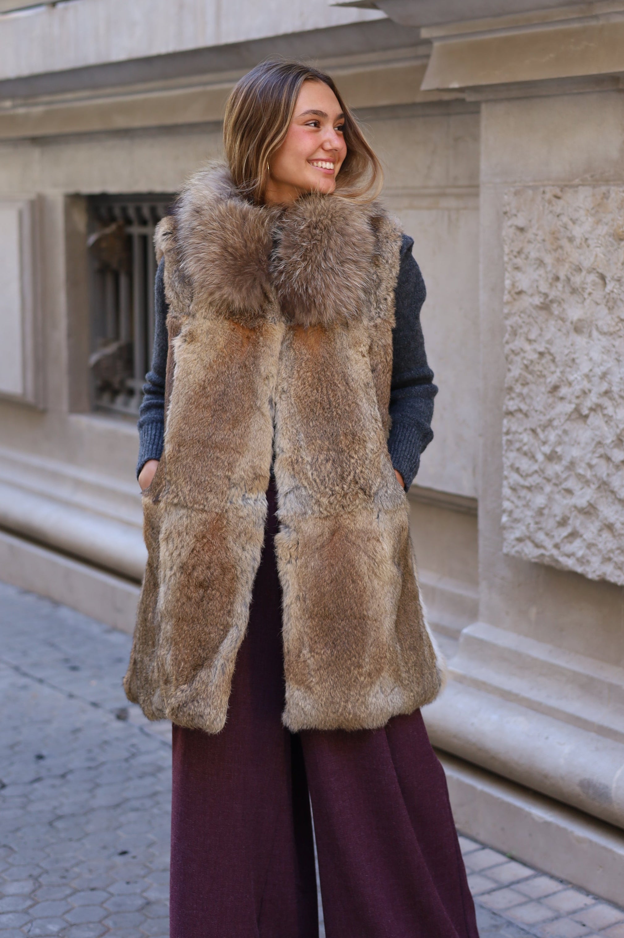 CHALECO PELO NATURAL LARGO 83 CM
