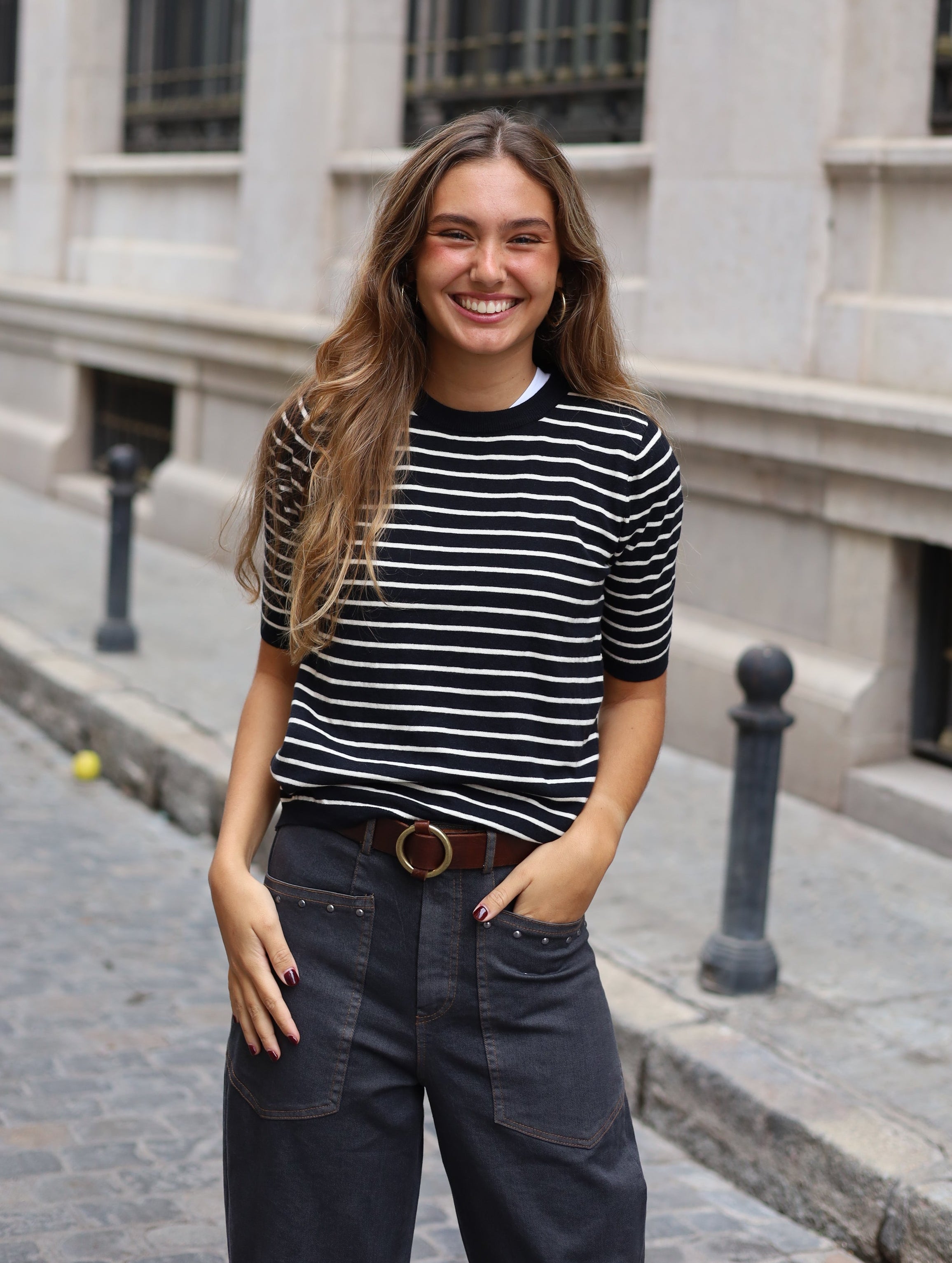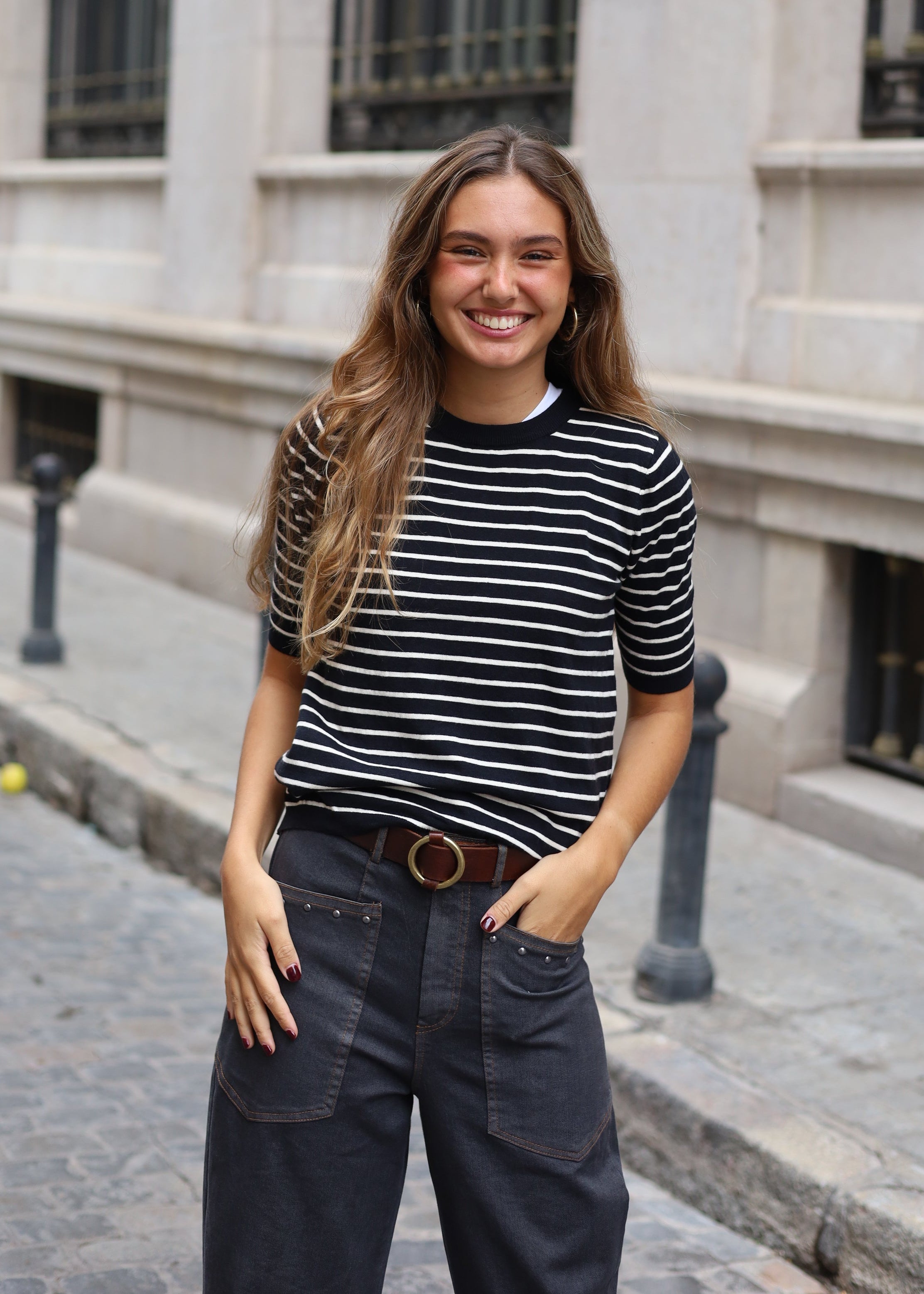 TOP PUNTO RAYAS NEGRO