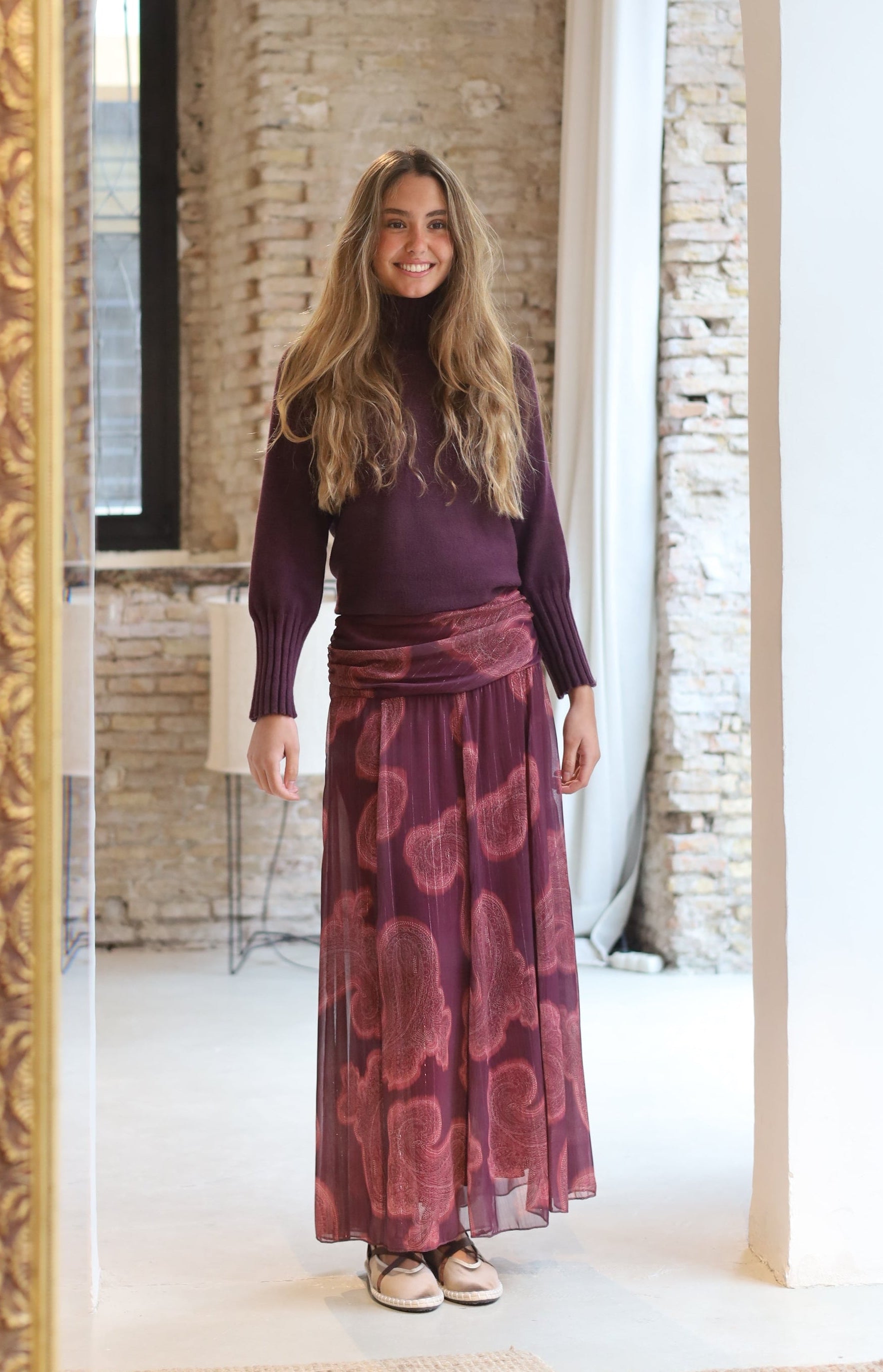 FALDA GASA ESTAMPADA BURDEOS