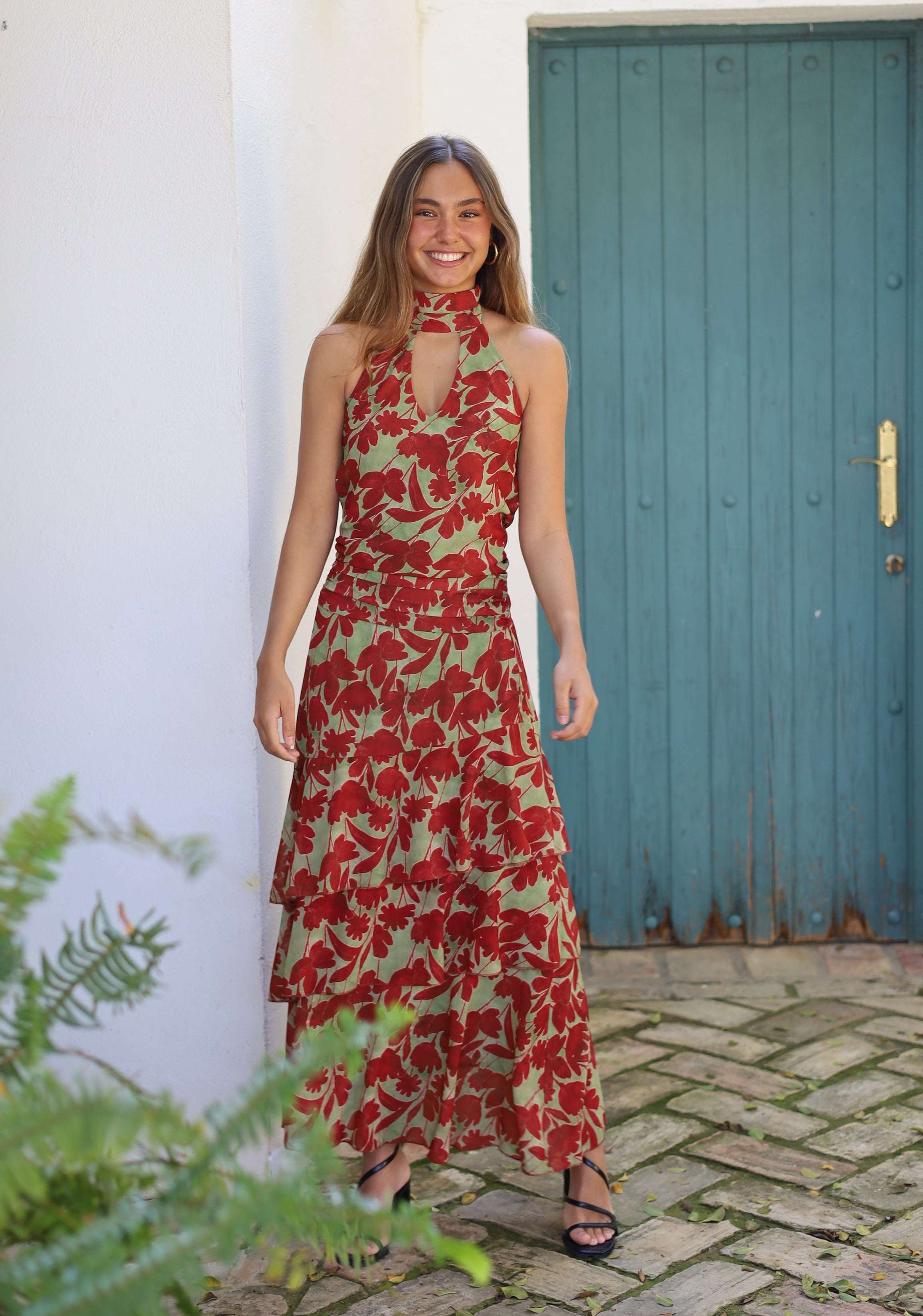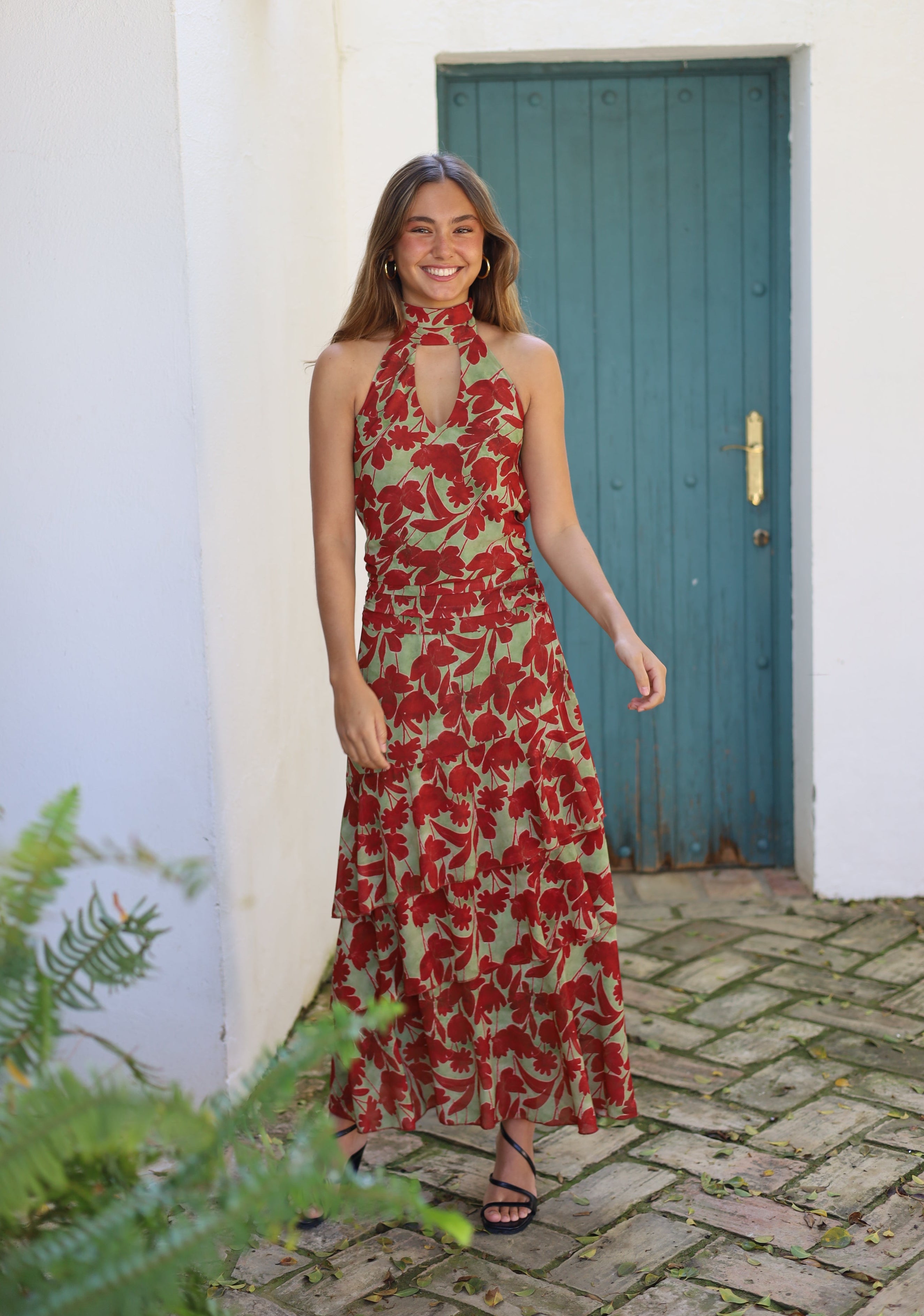 FALDA GASA FLORES TEJA
